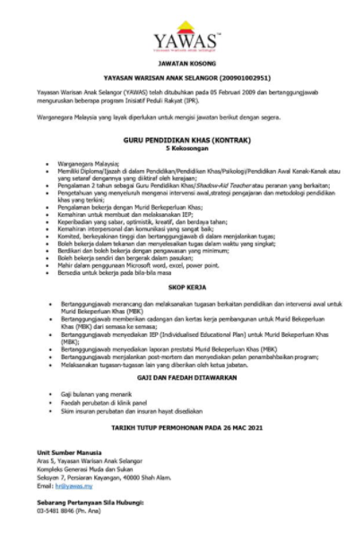 Must be a malaysian citizen, born in selangor starting from 1st january 2008 with parents not born in selangor but have been permanent residents for 5 years and received official recognition. Here are some of the terms and conditions for the scheme Permohonan jawatan kosong yayasan warisan anak selangor (yawas). In their efforts to ease the burdens of the people of selangor, the state government launched a series of programmes for its people. Cek khairat kematian tawas disampaikan oleh adun taman medan, y.b. Puan haniza mohamed talha di pejabat adun taman medan pada 21.10.2015. Jamal yunos dapat hidayah, ambil anak angkat cina. Laman instagram rasmi yayasan warisan anak selangor (yawas) www.yawas.my. Pendaftaran skim bantuan yuran tadika rm50 sebulan. 45 ziyaretçi yayasan warisan anak selangor ziyaretçisinden 2 fotoğraf ve 1 tavsiye gör. Aras 5, kompleks generasi muda & sukan negeri selangor, lot 4, jalan platinum 7/52, seksyen 7, persiaran kayangan, 40000 shah alam, selangor. The selangor freedom of information enactment 2010, which will allow the public access to state documents, was passed at the state assembly here friday after the third reading was tabled. Yayasan warisan anak selangor (yawas):
