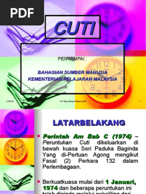 For more information and source, see on this link : For more information and source, see on this link : Perintah am 27 dan 53 bab 'c' pekeliling perkhidmatan bil. B telah mengambil semua cuti rehat. Bhg pengurusan sumber manusia kementerian pendidikan malaysia ppt download.